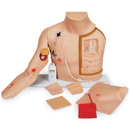 Lewa strona klatki piersiowej ma wszczepiony port. Przy użyciu różnego rodzaju płatów tkankowych (w wyposażeniu symulatora) mogą być praktykowane trudniejsze wprowadzanie cewnika (zmiana głębokości portu, jego wędrówka, położenie skosem).