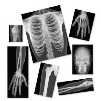 Autentyczne fragmenty prawdziwego układu kostnego. 18 zdjęć rentgenowskich do odtworzenia całego szkieletu.