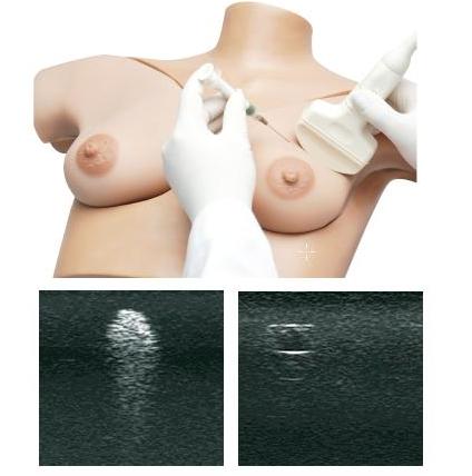 W modelu lewa pierś umożliwia rozróżnienie metodą ultradźwiękową cyst od torbieli z gęstą treścią, natomiast prawa pierś umożliwia identyfikację rozmiaru i głębokości torbieli.