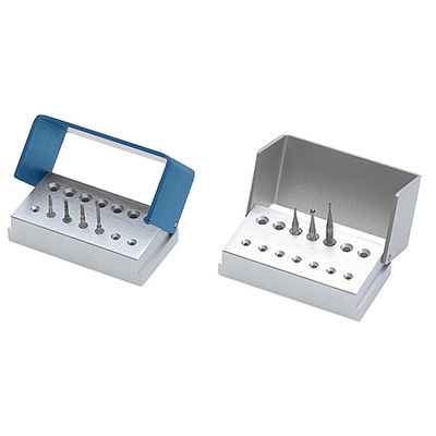 Aluminiowa podstawka. Posiada ruchomą przykrywkę. Nadaje się do sterylizacji w autoklawach.