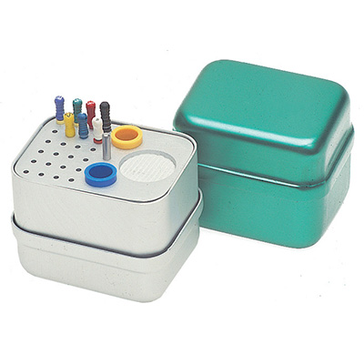 Aluminiowy endoboks z 24 otworami na instrumenty endo. Endoboks posiada dodatkowo 2 pojemniki na gutaperkę i pojemnik do odkażania. Nadaje się do sterylizacji w autoklawach.