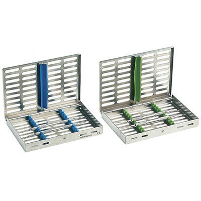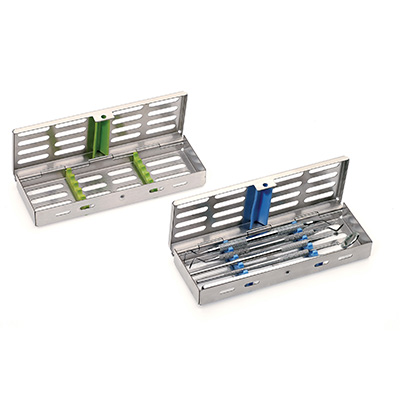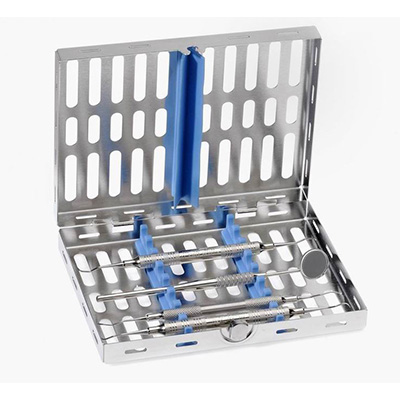 Kasetka posiada silikonowe podkładki – uchwyty na instrumenty i przykrywkę. Nadaje się do myjek ultradźwiękowych, do sterylizacji w autoklawach i do myjni – dezynfektorów.