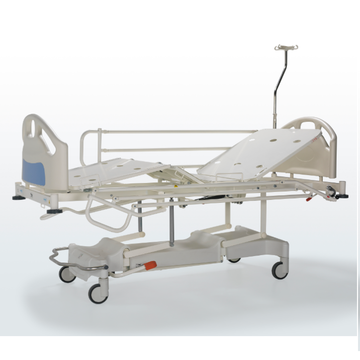 - Dwie metalowe barierki boczne opuszczane wzdłuż leża