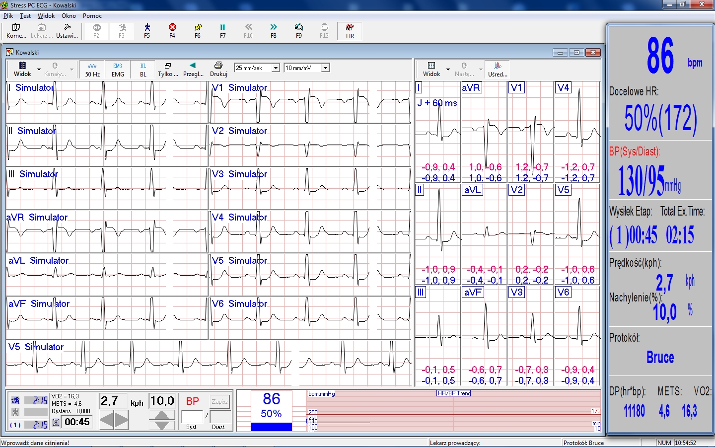 Podczas każdego badania wysiłkowego są momenty, w których operator traci kontakt wzrokowy z monitorem (np. podczas wykonywania pomiaru ciśnienia krwi pacjenta). W systemie N-Stress użytkownik może przejrzeć i wydrukować wcześniejsze fragmenty EKG podczas trwania testu!