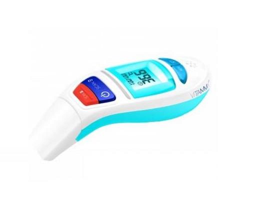 Termometr na podczerwień Novama VITAMMY Sky dokonuje pomiaru temperatury na czole i w uchu. Jest to termomert łatwy w obsłudze,pomiar następuje w 3 krokach. Posiada czytelny podświetlany ekran oraz skaźnik zużycia baterii. Funkcja automatycznego wyłączania zasilania pozwala oszczędzić baterie. Novama VITAMMY Sky ma funkcję pamięci do 30 pomiarów.