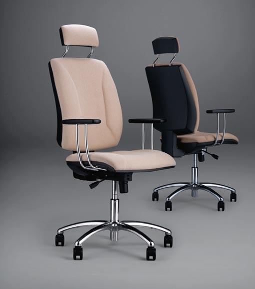 Tapicerowany, szeroki zagłówek. Szerokie, komfortowe siedzisko i ergonomicznie wyprofi lowane oparcie. Funkcja Up&Down – płynnie regulowana wysokość oparcia i podparcia lędźwi. Dynamiczne oparcie odchylające się synchronicznie z ruchomym siedziskiem w stosunku 2:1. Regulowana siła oporu oparcia. Możliwość blokady siedziska i oparcia w czterech pozycjach. Anti-Shock – zabezpieczenie przed uderzeniem oparcia w plecy użytkownika po zwolnieniu blokady ruchu. Regulowane podłokietniki (w pionie i pozycji nakładek) z miękkimi poliuretanowymi nakładkami lub podłokietniki stałe. Płynnie regulowana wysokość siedziska. Nowoczesna i stabilna pięcioramienna podstawa wykonana z polerowanego aluminium. Samohamowne kółka do powierzchni dywanowych w standardowej wersji. Samohamowne kółka do powierzchni twardych (pokryte cienką oponką). Dostepne modele: QUATRO HR R2C steel o4 chrome (mechanizm active-1, na kółkach), QUATRO R2C steel o4 chrome (mechanizm Active-1, na kółka), QUATRO HR gtp25i steel o4 chrome (mechanizm Active-1, na kółkach), QUATRO gtp25i steel o4 chrome (mechanizm Active-1, na kółkach), QUATRO cpf 25i chrome (na płozie), QUATRO cfs chrome (na płozie).