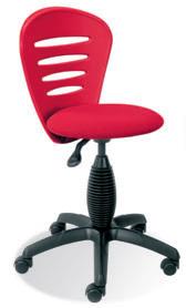 Krzesło dziecięce. Miękkie, tapicerowane siedzisko. Oparcie z tworzywa sztucznego. Płynnie regulowana wysokość siedziska za pomocą podnośnika pneumatycznego. Stabilna, nylonowa podstawa jezdna. Do wyboru samohamowne kółka do parkietów lub powierzchni dywanowych. Dopuszczalna waga użytkownika do 45 kg. Dostępne w wersji SCOOTER gts na kółkach.