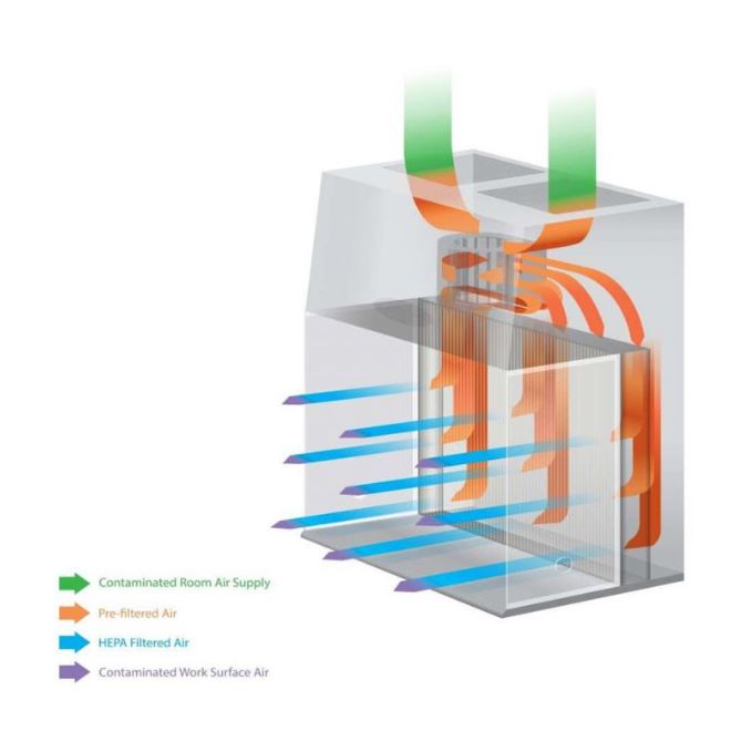 Komora do pracy czystej służy do ochrony produktu przed zanieczyszczeniem. Komora jest dostępna z opcjonalną podstawą z powierzchnią roboczą na wysokości 762 mm lub 914 mm. Znacząca ilość innowacji w projekcie zapewnia urządzeniu NuAire najwyższą jakość oczyszczania powietrza, doskonałe oświetlenie, niski poziom hałasu i wibracji.