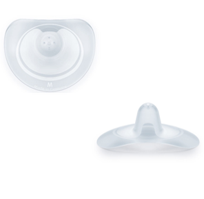 Sterylna osłonka brodawek sutkowych, wykonana z cienkiego silikonu, łagodnie zakończony, stożkowaty kształt, rozszerzajacy się ku dołowi, z czterema otworami wypływowymi, z trzypunktową, wyprofilowaną, sercowatą otoczką, gwarantującą doskonałe umocowanie na piersi, pakowana po 1 szt