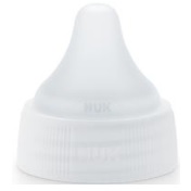 Sterylny, jednorazowy, stożkowy, ze zintegrowaną nakrętką, smoczek z silikonu do karmienia noworodków i niemowląt. Średni, jednootworowy przepływ, umieszczony w szczycie smoczka, sygnowany białym kolorem nakrętki. Standarowy rozmiar częsci wewnątrzustnej. Antykolkowy system odpowietrzania. Kompatybilny z butelkami i gotowymi mieszankami mlecznymi RTF wszystkich firm.