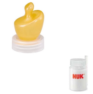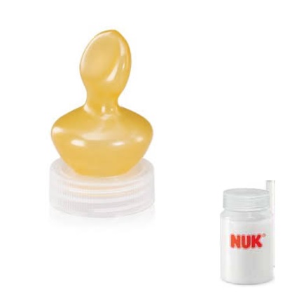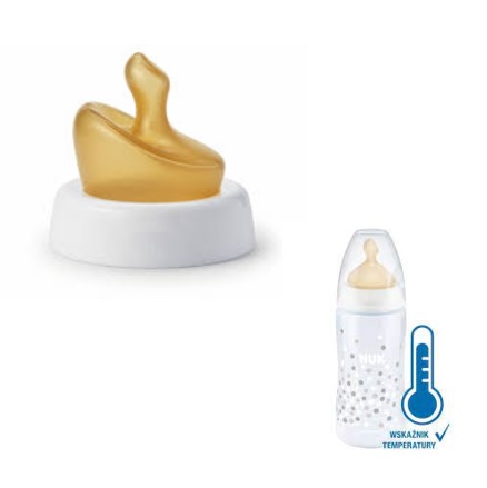 Wielorazowy smoczek specjalistyczny na rozszczep wargi, z nakrętką do butelki standard, z ekologicznego lateksu, z wypustką, zamykającą rozszczep od strony zewnętrznej, ze średnim otworem przepływowym, kompatybilny z gotowymi mieszankami mlecznymi wszystkich firm i butelkami szpitalnymi standard.
