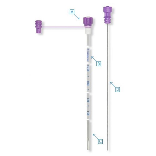 Flocare® Zgłębnik PUR z prowadnicą/z portem do odbarczania to zgłębnik nosowo-żołądkowy, przeznaczony do żywienia dojelitowego bezpośrednio do żołądka, wyposażony w dodatkowy port do odbarczania żołądka.