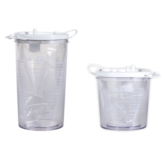 We wszystkich ssakach i zestawach do centralnej próżni produkowanych przez OGARIT możliwe jest stosowanie wkładów jednorazowych o pojemności 1l lub 2l.