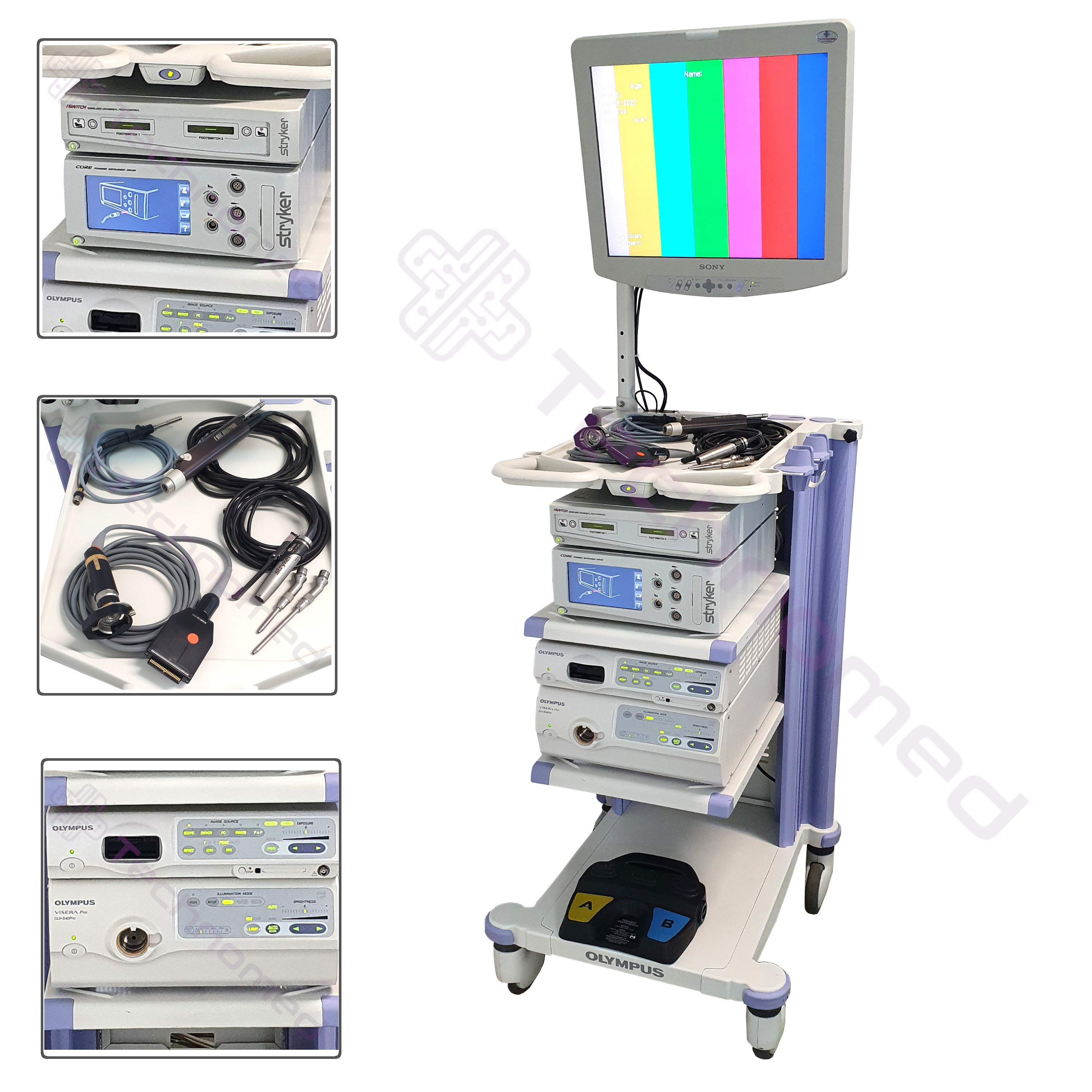 monitor medyczny OLYMPUS LMD2140MD s/n: 2012374, napęd neurochirurgiczny STRYKER z włącznikiem s/n: 1011001563 wraz z końcówkami STRYKER 5100-120-472 i STRYKER 5100-120-452 oraz pojemnik do sterylizacji, shaver STRYKER 12K 275-701-500, iSwitch STRYKER s/n: 09I055164, konsola STRYKER CORE I s/n: 1316507193 ( możliwość rozbudowania zestawu o napęd ortopedyczny z dedykowanymi końcówkami), procesor obrazu OLYMPUS Visera Pro OTV-S7 s/n: 7075471, źródło światła OLYMPUS CLV-S40 Pro s/n: 7125657, kamera OLYMPUS OTV-S7 s/n: 7200214, światłowód, wózek medyczny OLYMPUS WN-NP1 s/n: 2708923.