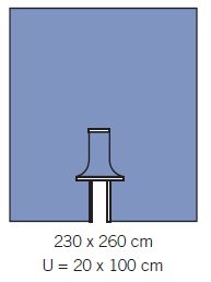 Serweta z wcięciem i przykryciem na genitalia - 230 x 260 cm, wcięcie 20 x 100 cm.