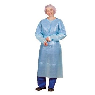 Nieprzepuszczalny fartuch barierowy (laminat). Kolor niebieski, długość 125 cm.