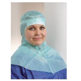 Czepek chirurgiczny z ochroną ramion. Wzorzysty, bezlateksowy. Wyposażony we wkładką przeciwpotną. Czepek wykonany z wiskozy. Kolor zielony.