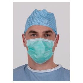 Maska z gumką na uszy. Rodzaj IIR. Odporna na przesiąkanie, zielona.