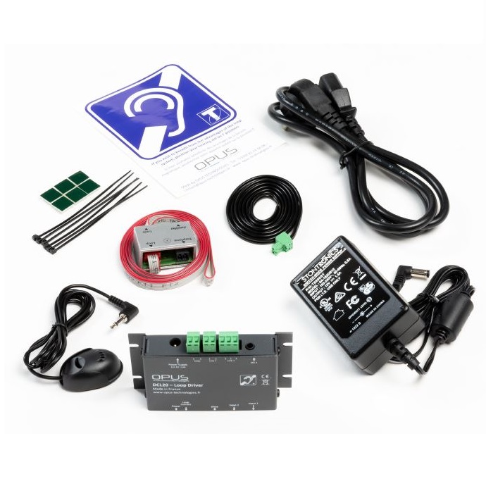 Dostarczony zestaw zawiera wzmacniacz pętli indukcyjnej, mikrofon, przewód pętli, zasilacz oraz oznakowanie stanowiska. Zastosowany układ przetwarzania sygnału umożliwia automatyczną redukcję zakłóceń, unikając głośnych i nagłych dźwięków.