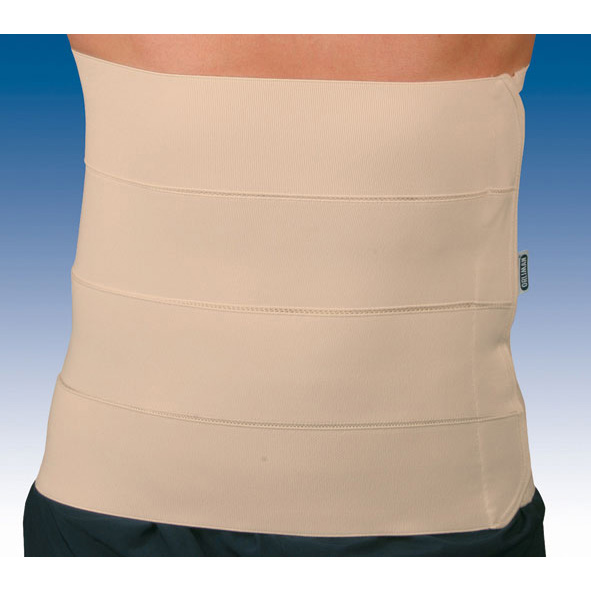 Czteropasmowy elastyczny pas żebrowo-brzuszny, o bawełnianym wykończeniu, zapinany na velcro.