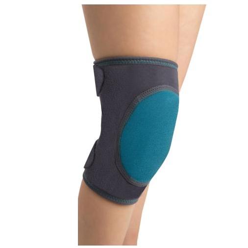 Dziecięcy stabilizator stawu kolanowego wykonany jest z oddychających materiałów od wewnętrznej strony o strukturze plastra miodu, od zewnętrznej strony materiał typu velur (oba materiały elastyczne), właściwości amortyzacyjne materiałów oraz dodatkowej wkładki rzepkowej zapewniają skuteczną ochronę przed urazami przedniej części kolana, orteza jest zapinana na taśmy velcro znajdujące się w tylnej części uda i podudzia.