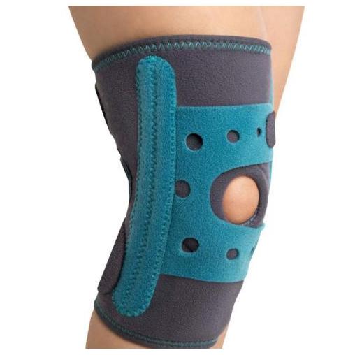 Dziecięca orteza korekcyjna rzepki wykonana jest z oddychających materiałów od wewnętrznej strony o strukturze plastra miodu, od zewnętrznej strony materiał typu velur (oba materiały elastyczne), po bokach znajdują się elastyczne fiszbiny wspierające i stymulujące więzadła poboczne stawu kolanowego, orteza jest zapinana na taśmy velcro znajdujące się z tyłu uda i podudzia, co pozwala na odpowiednie dopasowanie siły kompresji oraz stabilizacji, w przedniej części otwór na rzepkę zapewnia lepszą stabilizację całego stawu kolanowego wraz z dodatkowym elementem umożliwiającym korekcję położenia i zabezpieczenie przed bocznym przemieszczaniem się rzepki.