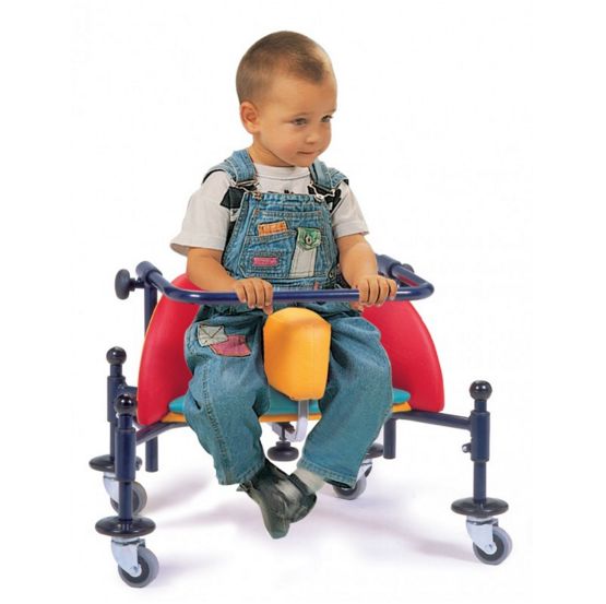 Ormesa Birillo Fotelik rehabilitacyjny na kółeczkach ze stabilizacją pleców i głowy to pomoc dla dzieci z MPD. Szeroki klin oraz bezpieczna rączka czynią urządzenie bardzo bezpieczne, a dzięki zamontowaniu kółek również mobilne. Dodatkowo dostępny zagłówek i stolik edukacyjny.