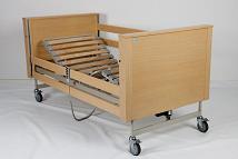 Wyposażenie standardowe: wysięgnik; barierki oraz system transportowy. Regulacje: góra dół (automatycznie); zagłówek(automatycznie); część udowa(automatycznie); część łydkowa (manualnie) - pozycja antytrendelenburga (automatycznie); blokada pilota przed manipulowaniem przez pacjenta. Parametry techniczne łóżka: długość wewnętrzna 210 cm /zewnętrzna 214 cm; szerokość wewnętrzna 90 cm / zewnętrzna 100 cm; najniższe /najwyższe położenie 34/73 cm; kąt regulacji zagłowia o° - 70; kąt regulacji ud 0° - 30° regulacja stóp 20; max dopuszczalne obciążenie 190 kg. Obudowa łóżka wykonana z drzewa bukowego z metalowym leżem. Regulacja wysokości całego leża, kąta nachylenia oparcia i kąta nachylenia części udowej podnóżka za pomocą pilota.