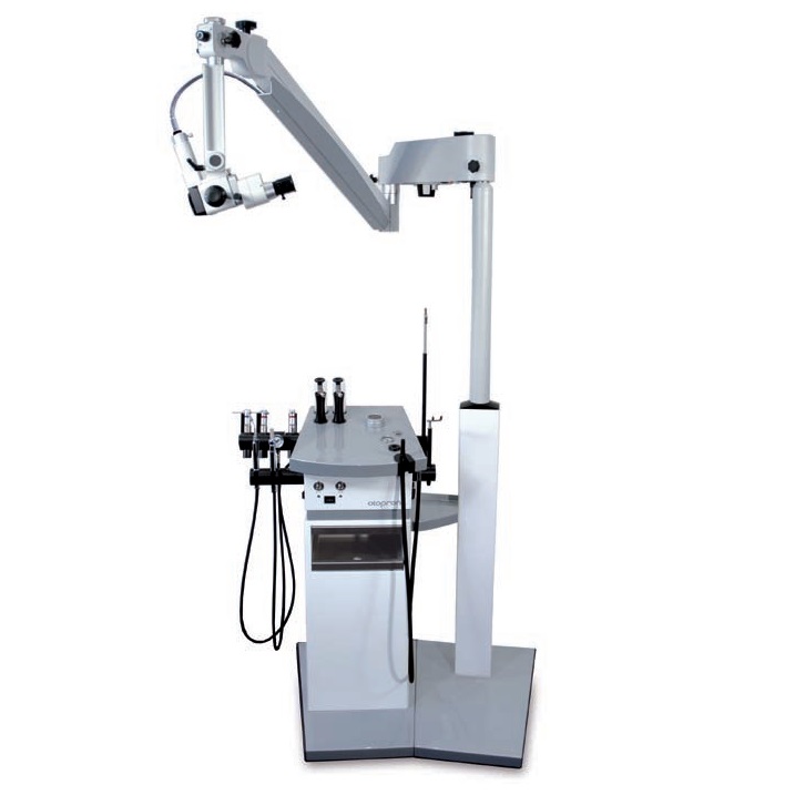 Mikroskop diagnostyczny Kaps zintegrowany z unitem laryngologicznym, montowany na kolumnie SMART. Mikroskop wyposażony w źródło światła i światłowód, tubus prosty f=125 mm, okular x 10, obiektyw o ogniskowej f=200 mm, 3-stopniowa zmiana powiększenia. Akcesoria: zapasowa żarówka i osłona zabezpieczająca mikroskop.
