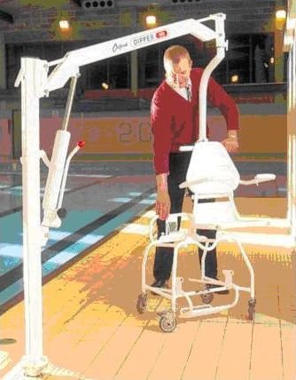 Podnośnik hydrauliczny przeznaczony do pomocy osobom niepełnosprawnym w korzystaniu z basenów i innych obiektów o podobnym przeznaczeniu. Dostępny z krzesełkiem i wózkiem transportowym lub z wieszakiem i siedziskiem. Praktyczny i łatwy w obsłudze. Posiada szeroką gamę siedzisk do wyboru. Można go zamontować na trzy różne sposoby. Maksymalne bezpieczne obciążenie 140kg. W zależności od wersji montażu zakres pracy ramienia wynosi od 914 mm poniżej poziomu basenu do 1039 mm ponad ten poziom.