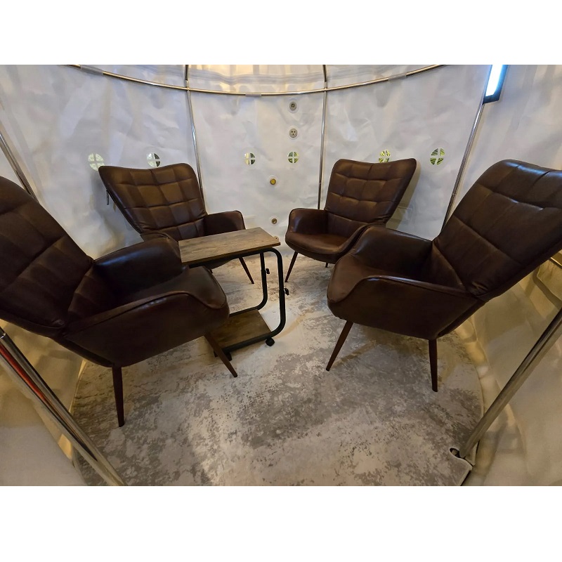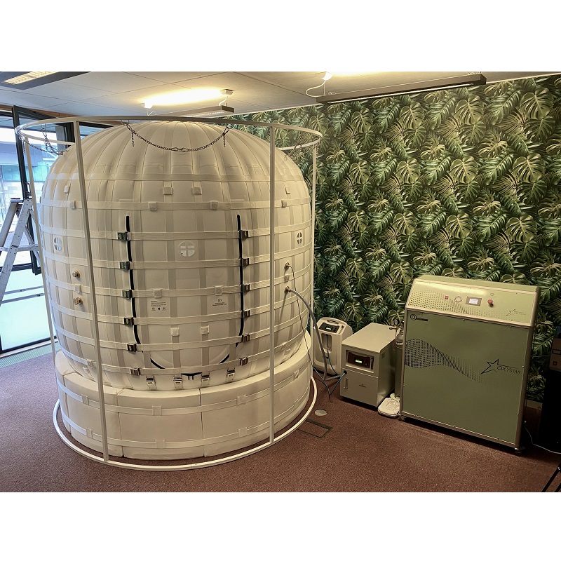 Maksymalnie przestrzenne i jasne wnętrze, szerokie i wygodnie wejście, możliwość korzystania ze sprzętu elektronicznego w środku, dowolna długość zabiegu normobarycznego, prosta obsługa sterownika to atuty tego rozwiązania. System dodatkowo wyposażony jest m.in. w generator wodoru gazowego, wydajną i cichą sprężarkę, profesjonalny koncentrator tlenu, system chłodzenia i osuszania powietrza, ozonator to dezynfekcji wnętrza komory po seansie oraz butlę CO2 z reduktorem dla szybszego osiągnięcia optymalnej atmosfery w komorze.