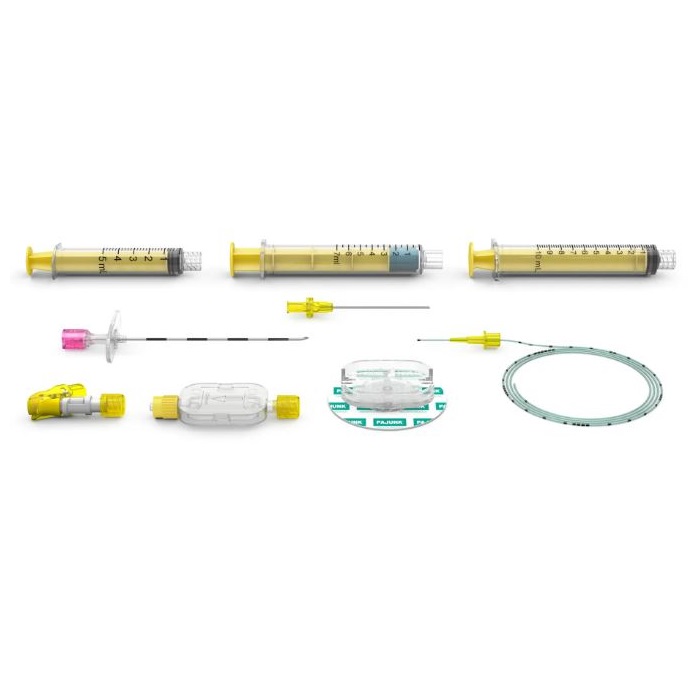 Zestawy do znieczulenia zewnątrzoponowego z cewnikiem ślepo zakończonym z trzema otworami bocznymi. Igła Tuohy II ze zitegrowanymi skrzydełkami oraz pozostałe akcesoria, takie jak adapter zaciskowy, filtry bakteryjne i strzykawki LOR.