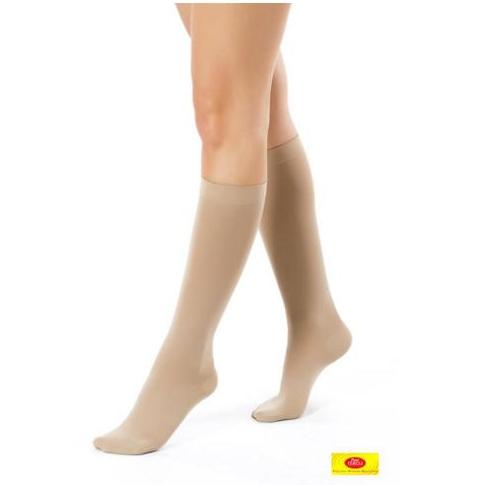 Podkolanówki medyczne uciskowe 1 klasy kompresji są profesjonalnym produktem medycznym, który dzięki zastosowaniu zmiennego, stopniowanego ucisku wykazuje działanie przeciwżylakowe. Wskazaniem do stosowania medycznych podkolanówek uciskowych 1 klasy kompresji są profilaktyka oraz leczenie pierwszych etapów choroby żylnej, takich jak np.: narastający obrzęk kończyn w czasie dnia, uczucie ciężkości nóg, czy pojawiające się tzw. pajączki żylne (wszystkie wskazania – patrz poniżej). Dzięki regularnemu stosowaniu podkolanówek uciskowych o zmiennym stopniu kompresji zmniejsza się nasilenie pierwszych objawów choroby.