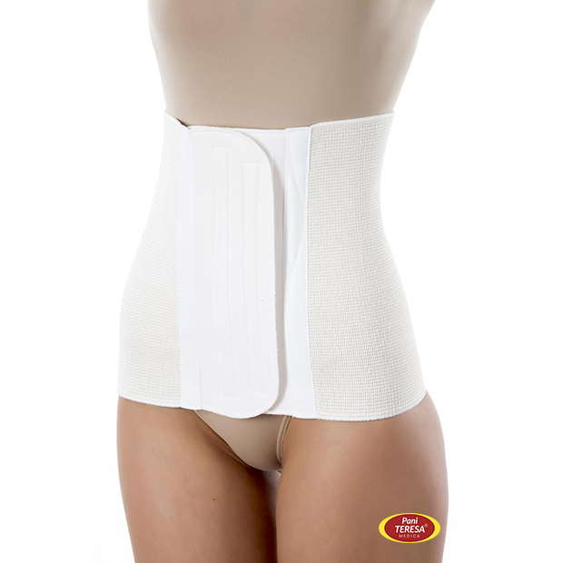 Odpiąć rzep. Pas ułożyć obejmując brzuch i odcinek lędźwiowo – krzyżowy, tak aby zapięcie na rzep przypadało z przodu. Pas zapiąć regulując indywidualnie w obrębie zapięcia na rzep.