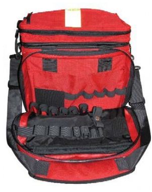 Torba ratunkowa HAD−5113 na zestaw pierwszej pomocy z dwoma komorami i dodatkową przeźroczystą komorą od góry. Torba może zostać przystosowana do różnych zastosowań przez dołożenie dodatkowych wewnętrznych organizatorów.