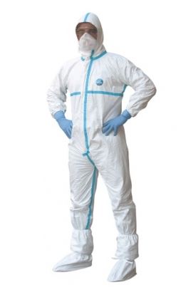 Kombinezon i buty chronią osoby przed płynnymi i stałymi chemikaliami, cząsteczkami azbestu, pyłem, cząsteczkami włóknistymi, cząsteczkami agrochemicznymi i farbami. Zapewniają także pełną ochronę procesów technologicznych przed kontaminacją przez obsługę w pomieszczeniach czystych, laboratoriach lub pomieszczeniach do produkcji środków żywnościowych. Całość została zamknięta w formie małego zafoliowanego pakietu, opatrzonego instrukcją obsługi.