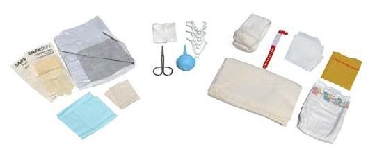 Zestaw porodowy jednorazowego użytku składa się z trzech pakietów, które zawierają: