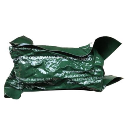 Opatrunek indywidualny na opasce elastycznej przeznaczony do tamowania dużych krwotoków w trudnych warunkach oraz do opatrywania ran postrzałowych. Zapakowany próżniowo w wodoodporne opakowanie, aby jeszcze łatwiej można go było przechowywać i transportować.