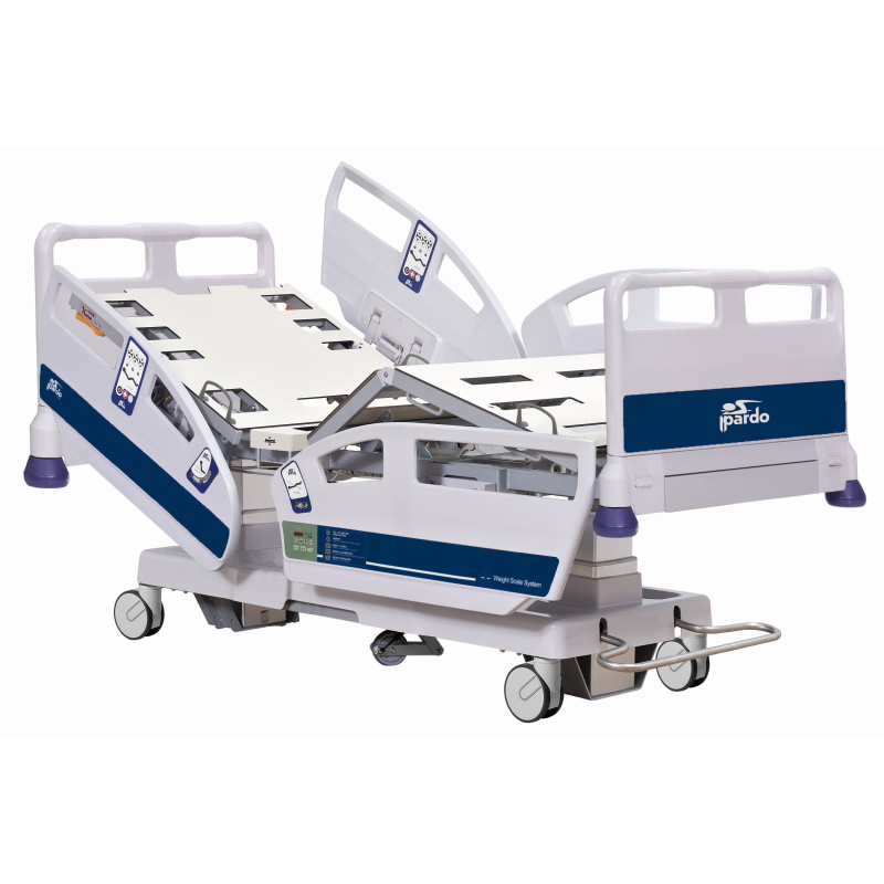 Łóżko do intensywnej terapii Technoplus opcjonalnie może być wyposażone w zintegrowany system pomiaru masy ciała pacjenta z wyświetlaczami wbudowanymi w barierki boczne