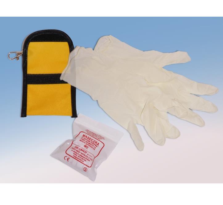 - Wyposażenie, czyli maseczka do sztucznego oddychania oraz rękawice gumowe umożliwiają udzielenie pierwszej pomocy poprzez masaż serca i sztuczne oddychanie usta-usta.
