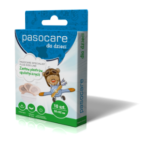 - W zestawie 10 sztuk plastrów o wymiarach 50 mm x 62 mm