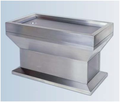 Stół do selekcjonowania narządów jest ustawiony w pozycji litery L w stosunku do sekcyjnego wentylowanego. Blat roboczy ze stali kwasoodpornej może być wyposażony w płytę do selekcjonowania pobranego materiału. Duża stabilność. Dzięki centralnej nodze łatwy dostęp do pola pracy.