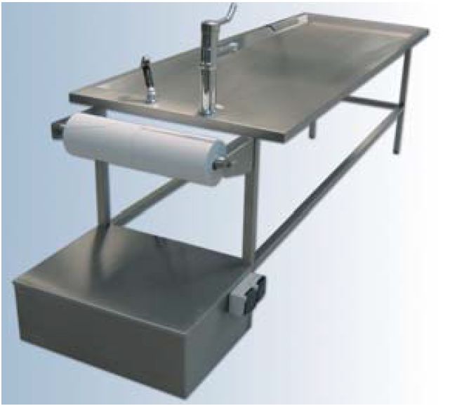 Diamentowy punkt na tacy pozwalający na odpływ wycieków z drenowanych miejsc. Wyposażony w krawędź umożliwiającą zamontowanie baterii z ciepłą i zimną wodą oraz 2m elastycznego węża. Wieszak na rolkę papieru, pokrywa ze stali nierdzewnej na narzędzia, wodoodporne gniazdko elektryczne na życzenie.