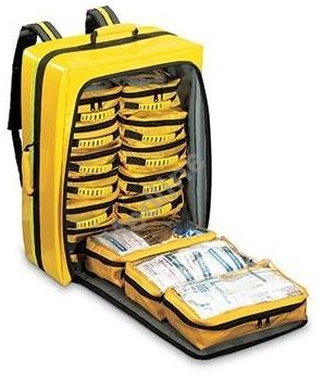 Plecak DISASTER/Plan składa się z 14 podręcznych modułów z miejscem na podstawowy sprzęt i materiały jednorazowego użytku, pakiet ochronny przed zakażeniem, zestaw przeciwwstrząsowy, przeznaczonych do ratowania 14 osób, każdy ratownik może być wyposażony w jedną saszetkę.
