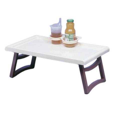 Ten przenośny stolik umożliwia przede wszystkim wygodne spożywanie posiłków w łóżku, ale można go także wykorzystać jako podręczna podstawka do pisania czy hobby. Bezpieczny i wygodny. Stolik wyposażony jest dodatkowo w dwa uchwyty - do szklanki i butelki, podwyższone obrzeże chroni umieszczone na min naczynia przed zsunięciem. Stolik ze składanymi nogami.