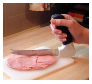 Nóż ogólnego przeznaczenia posiada ergonomiczny uchwyt, który utrzymuje rękę w naturalnej pozycji.