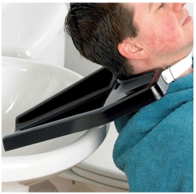 Rynna do mycia włosów sprawia, że mycie i płukanie włosów w pozycji siedzącej jest łatwiejsze dla osób starszych. Opływowy kształt pasuje do szyi i ramion komfortowo. Uniesione krawędzie pozwalają wodzie spłynąć do zlewu bez przecieków. Idealna dla użytkowników wózków inwalidzkich.