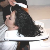 Rynna do mycia włosów sprawia, że mycie i płukanie włosów w pozycji siedzącej jest łatwiejsze dla osób starszych i niepełnosprawnych. Kształ tacy łatwo dopasowuje się do szyi i wygodnie opiera się na barkach. Uniesione krawędzie pozwalają wodzie spłynąć do zlewu bez przecieków. Idealna dla użytkowników wózków inwalidzkich. Rynna jest wykonana z tworzywa sztucznego dlatego jest lekka i wygodna w użytkowaniu.