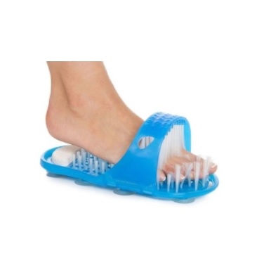 Prysznicowy sandał to pomocny przyrząd do pielęgnacji stóp - dzięki niemu podczas kąpieli nie tylko je umyjesz, ale także wymasujesz. Dzięki przyssawkom znajdującym się pod spodem sandału, wystarczy przyczepić przyrząd do dna wanny lub prysznica. Nie wymaga schylania się i namiernego nadwyrężania kręgosłupa i rąk, co ułatwia utrzymanie higieny stóp niemal bez żadnego wysiłku. Sandał składa się z dwóch szczotek myjąco – masujących (twardej i miękkiej) oraz pumeksu.