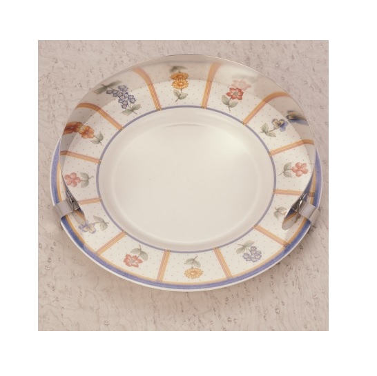 Osłona ta wykonana jest ze stali nierdzewnej i jest przydatna dla osób, które potrzebują pomocy przy jedzeniu. Szczególnie przydatna dla osób jędzących jedną ręką. Zapobiega spadaniu jedzenia z talerza. Łatwa w montażu. Może być myta ręcznie oraz w zmywarce.